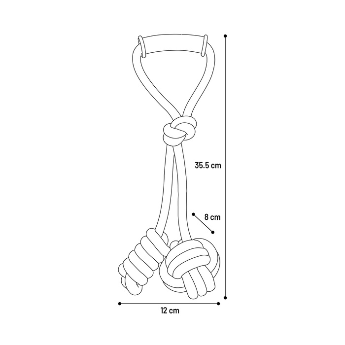 Sõlmitud pall ja keeruga disain muudavad mänguasja koerale haaratavaks ning kutsuvad loomulikku mänguinstinkti kasutama. Käepide on mugav ja praktiline, muutes tirimismängud turvalisemaks ning pakkudes rõõmu nii koerale kui omanikule. Sobib hästi keskmise ja suure energiaga koertele, kes naudivad aktiivset mängu ja koostegutsemist.