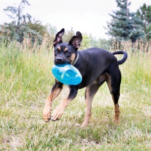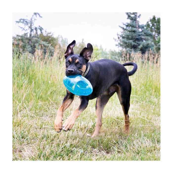 Теннисный мячик внутри игрушки и громкий писк вовлекают в игру, а удобные ручки позволяют легко подбирать и встряхивать игрушку. Jumbler – это игра на пределе возможностей; игрушка идеально подходит для обучения аппортировке. С KONG Jumbler игра с собакой будет активной и увлекательной.